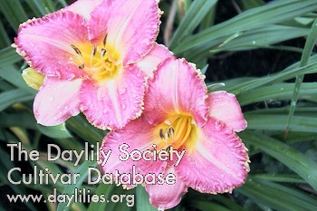 | Description : intense rose peach self with orange gold edge and deep rose peach throat | |