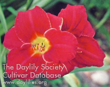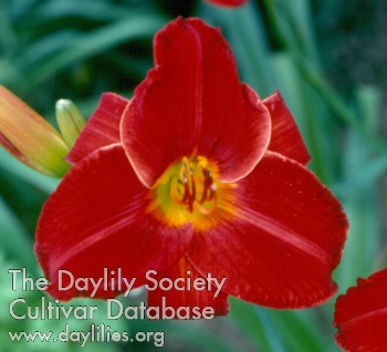 | Description : scarlet self with yellow green throat | |