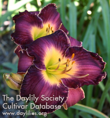 | Description : rich red grape with darker velvety grape purple eye and white edge above green to cream lemon throat | |