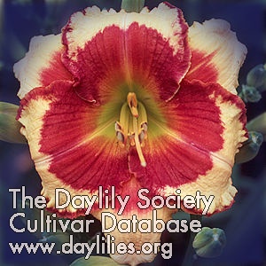| Description : very pale peach with pale cranberry red eye and edge above green throat | |