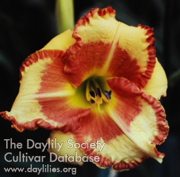 | Description : pastel peach with dark cranberry red eye and edge above yellow throat | |