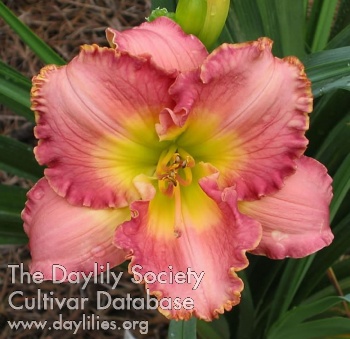 | Description : pink with gold edge above green throat | |