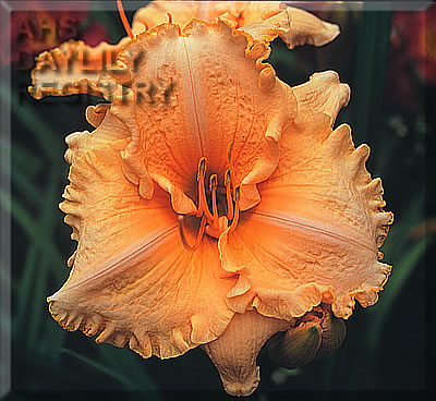 | Description : cream melon with red eye and gold orange picotee edge above green throat | |