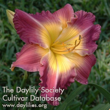 | Description : purple with white watermark eye and edge above green throat | |