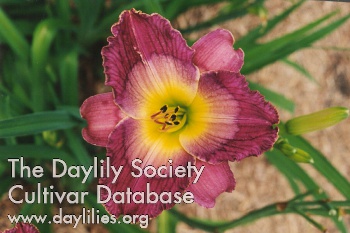 Description : purple with white band and tooth edge above yellow throat