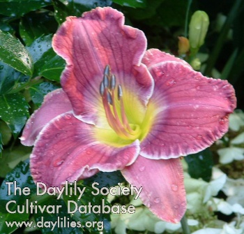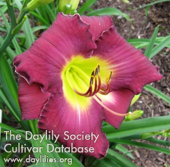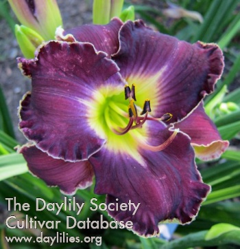 | Description : purple with silvery cream band and light blue purple watermark and white edge above yellow green throat | |