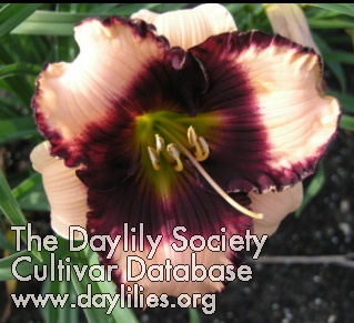 | Description : lavender cream with lavender purple eye above very green throat | |