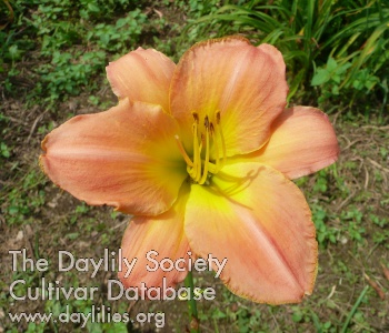 | Description : pale pink overlaid green gold with olive gold throat | |