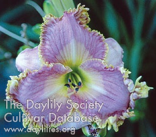 | Description : lavender rose with silver lavender watermark and edge above green throat | |