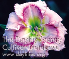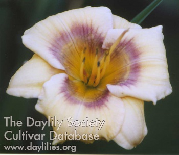 | Description : cream with multicolored eye and edge above green throat | |