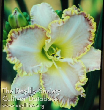 | Description : light muted rose with white midribs and gold tooth edge | |
