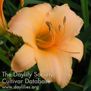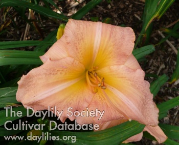 | Description : peach overlaid rose polychrome with gold green throat | |