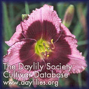 | Description : ruffled deep rose with fuchsia purple eye and edge lined with white large green throat | |