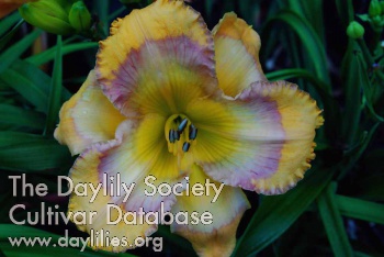 | Description : Yellow with multicolored patterned eye of purple, lavender and charcoal. | |