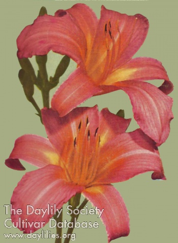 | Description : salmon pink with red eyezone and greenish yellow throat | |