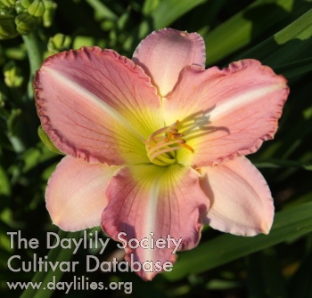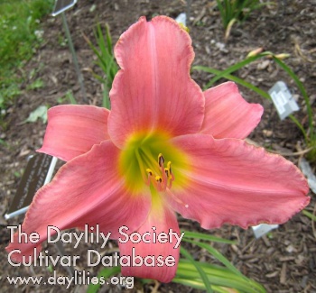 | Description : raspberry rose blend with gold edge and green throat | |