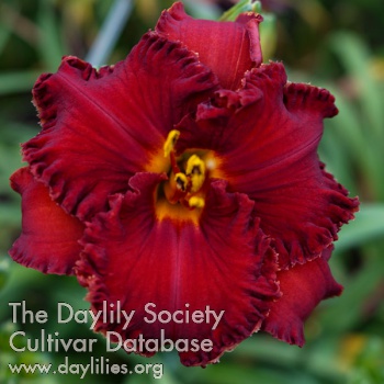 | Description : Red with a bluish undertone and an intense green throat. | |