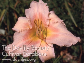 | Description : cream pink blend with dark lavender eyezone and green yellow throat | |