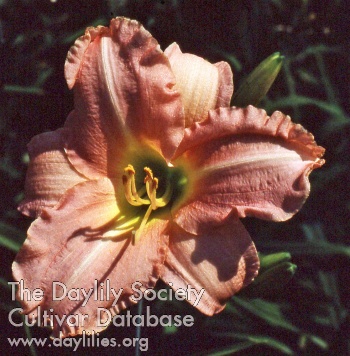 | Description : white with pastel pink overlay and green yellow throat | |