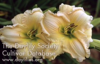 | Description : peach pink blend with big lemon halo and green throat | |