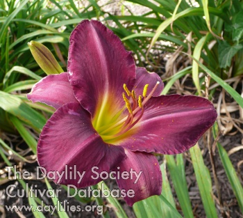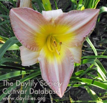 | Description : grayed lavender edged cream with yellow watermark above green throat | |