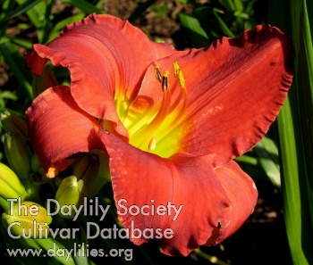| Description : red bitone with cream halo and green throat | |