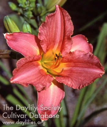 | Description : tangerine rose blend with lighter eyezone and greenish yellow throat | |