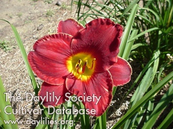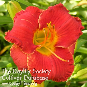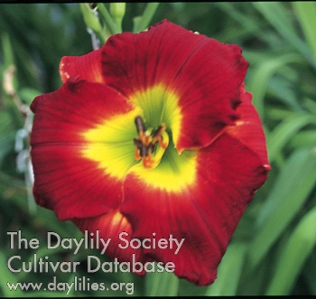 | Description : garnet red with Chinese red watermark halo above yellow to green throat | |
