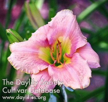 Description : lavender pink with lighter pink eye above yellow with green heart throat