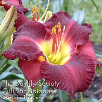 | Description : dark red purple self with yellow green throat | |