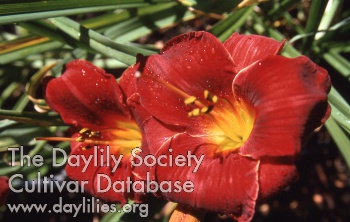 | Description : cardinal red self edged gold with yellow chartreuse throat | |