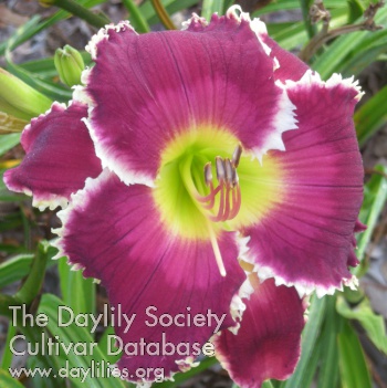 | Description : Deep purple with a watermark and green yellow throat and white teeth on edge. | |