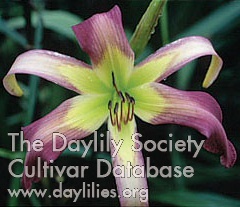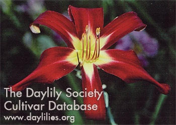| Description : garnet red with a green throat, both sepals and petals are patterned | |