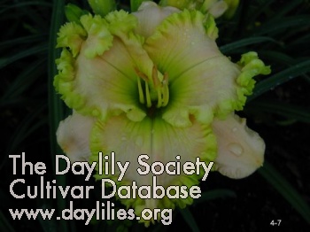 | Description : Pink blush with a green throat and green edge and teeth. | |