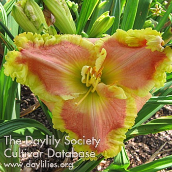 | Description : pink yellow blend, large green edge | |