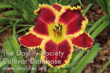 | Description : Medium red petals with toothy gold edge on petals and sepals. | |