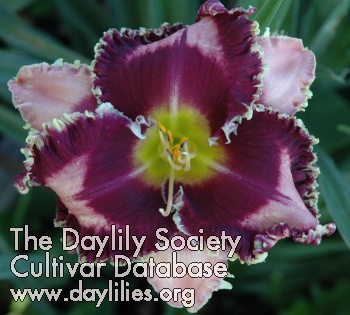 | Description : mauve with a purple eye and triple colored edge with teeth | |