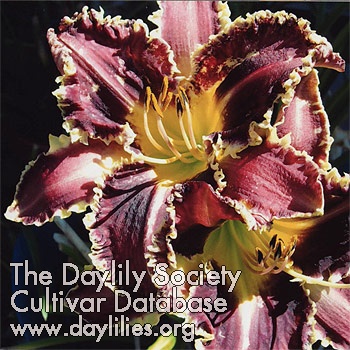 | Description : plum purple with yellow chartreuse throat, white tooth edge | |