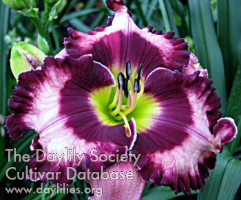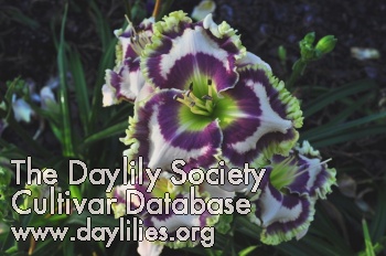 | Description : orchid with purple eye, wide edges on petals above green throat | |
