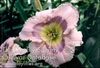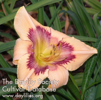 | Description : peach violet with violet eye above green throat | |