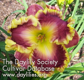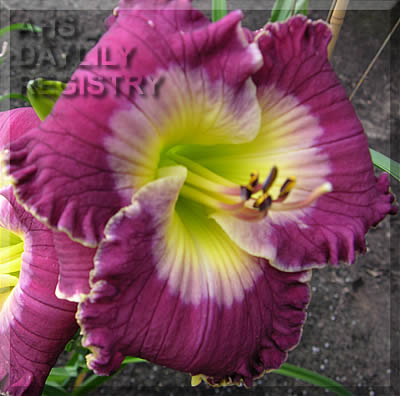 | Description : watermelon pink with big cream yellow watermark and yellow ruffled edge | |