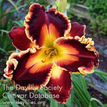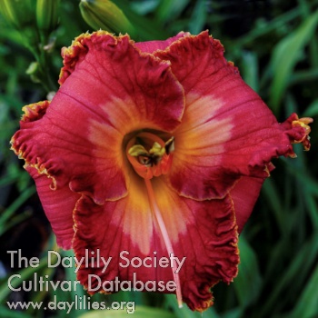| Description : Fiery red with yellow orange watermark and orange edge with orange green throat. | |