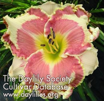 | Description : Cream with large purple eye and wide purple edge. | |