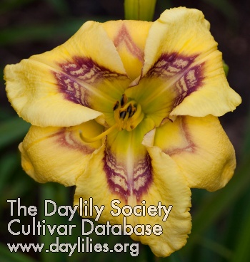 | Description : wine red multicycle pattern,light yellow base, green throat, ruffled | |