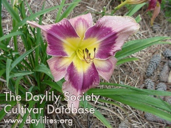 | Description : lavender with blue eye and edge above green throat | |