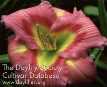 | Description : pale pink with bold rose eyezone above dark green throat | |