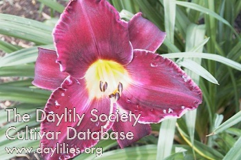 | Description : dark purple self with small lemon lime throat | |