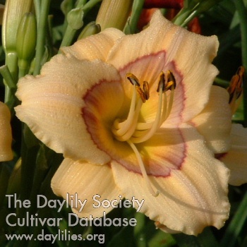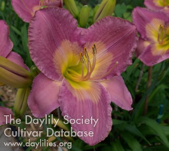 | Description : lavender rose with blue violet eyezone and yellow to green throat | |