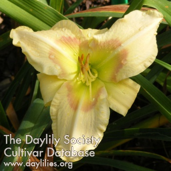 | Description : yellow with mauve rose edge and mauve rose eyezone above green throat | |