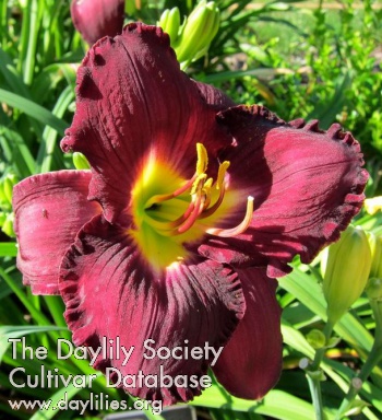 | Description : deep purple blend with white picotee and gray wash halo above a green yellow throat | |